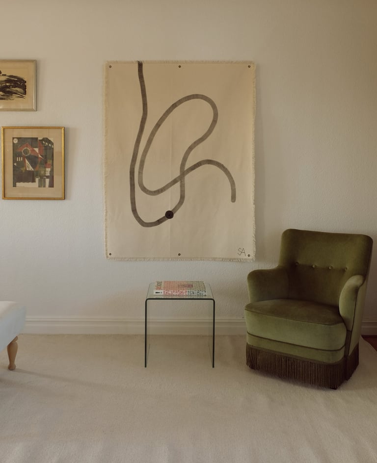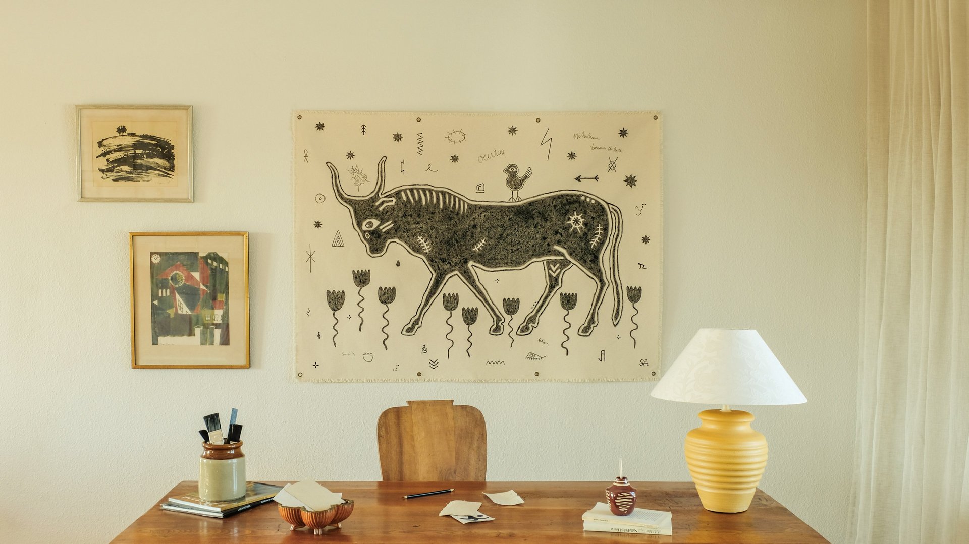 EACH TAPESTRY INVITES A SLOWER GAZE: WHAT FIRST SEEMS LIKE A BOLD SILHOUETTE UNFOLDS INTO A MINIATURE WORLD.