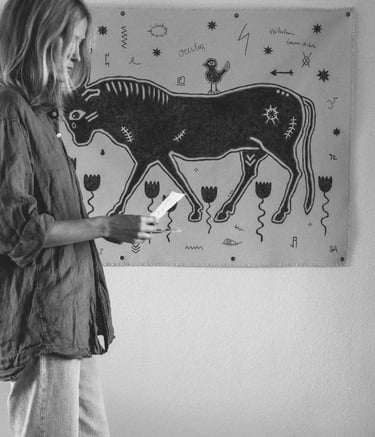 EACH WORK IS CREATED AS A STATEMENT PIECE FOR MODERN INTERIORS. I THINK OF THEM AS MODERN CAVE PAINTINGS — SLOW, TEXTURED, AND CARRYING TRACES OF SOMETHING ANCIENT. EACH ONE HOLDING ITS OWN STORY.